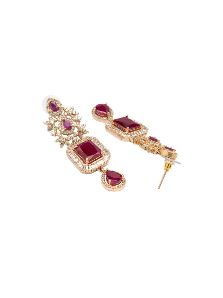 24K Rose Gold Plated Pink Sapphire & CZ Studded Handcrafted Premium Jewellery Set