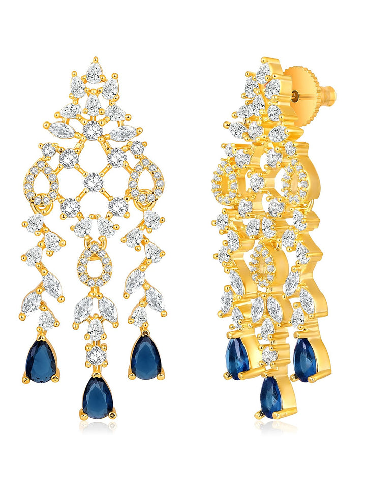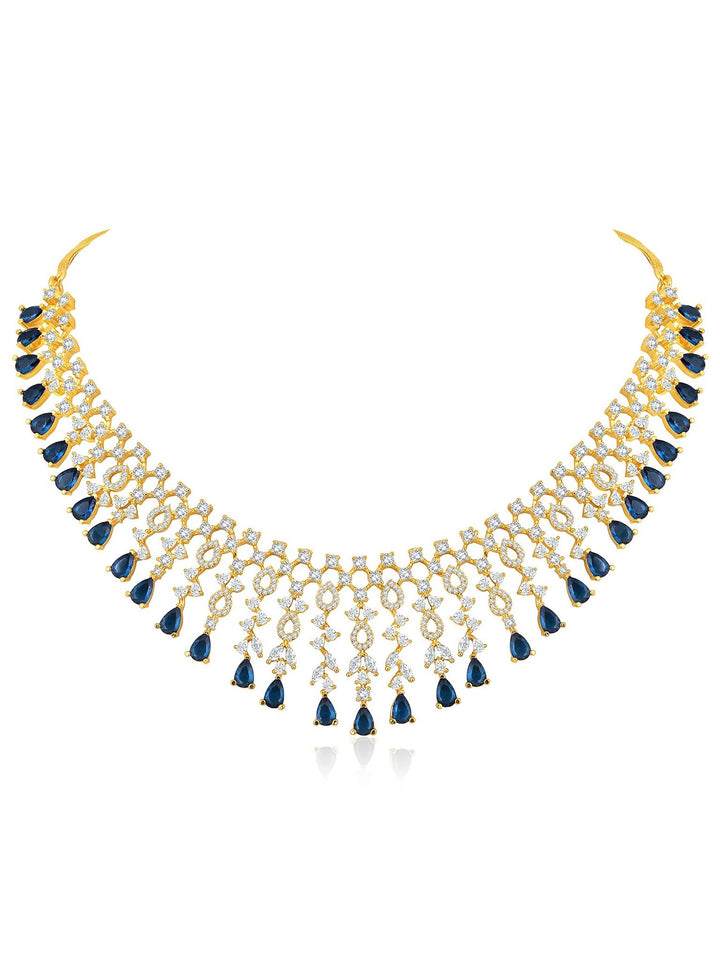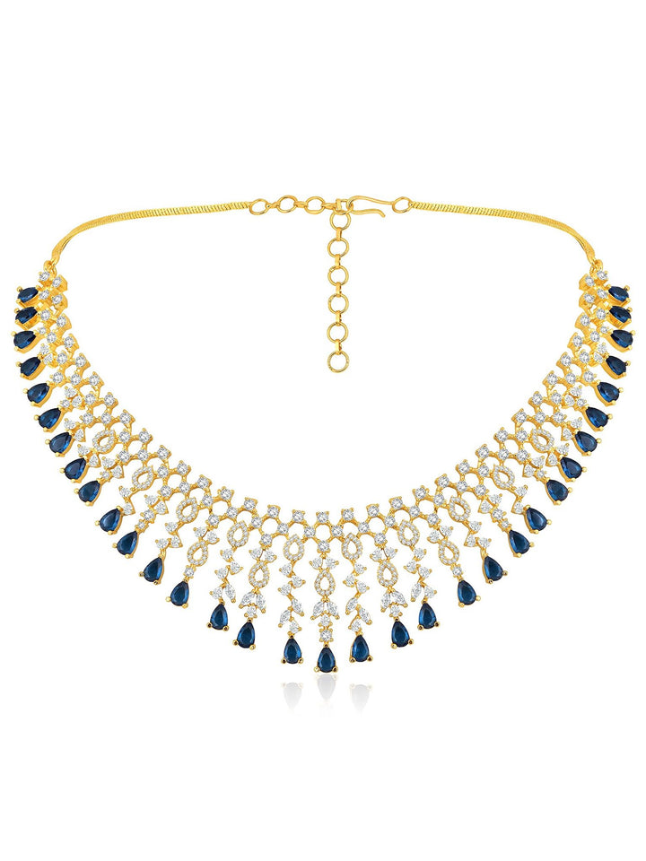 Gold Plated Cz & Blue Beads Studded Jewellery Set For Women
