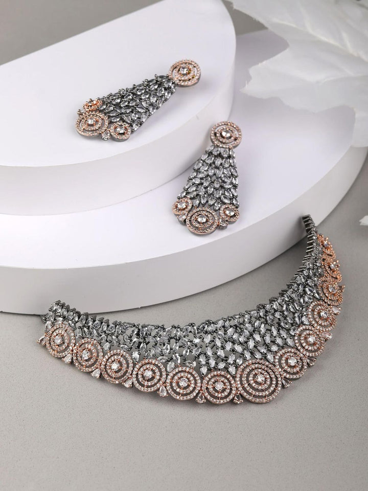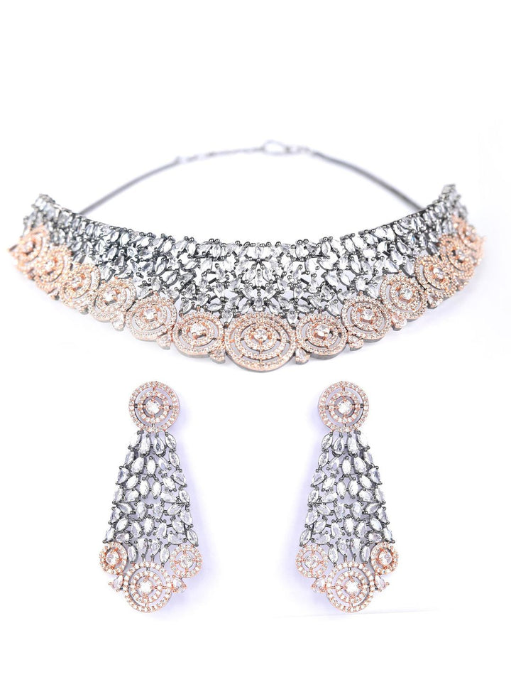 Grey American Diamond Cubic Zirconia Rose Gold Plated Choker Set