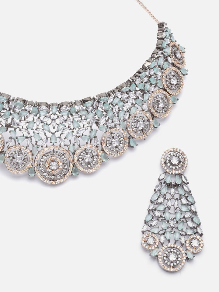 Rose Gold Plated Gunmetal Toned Green Ad Choker Crystal Jewellery