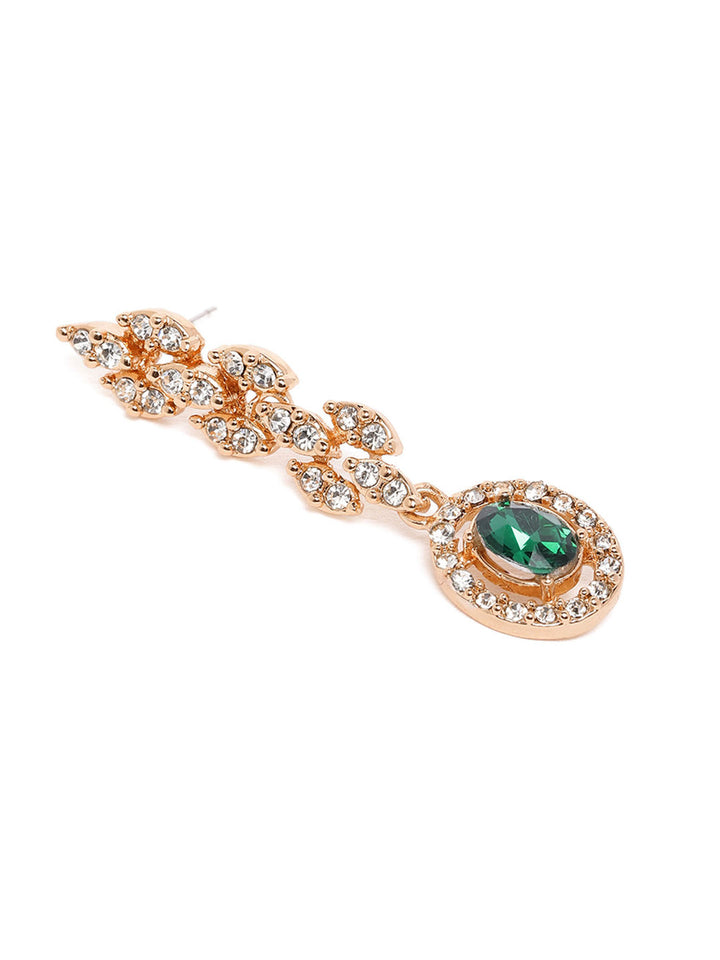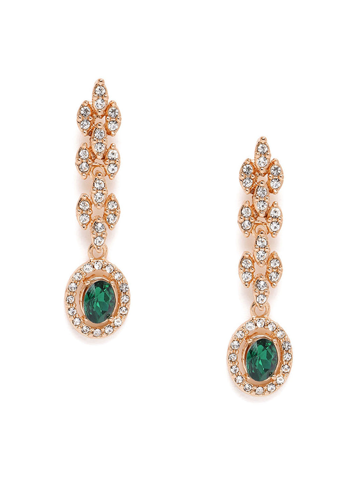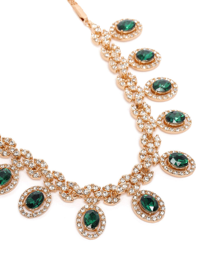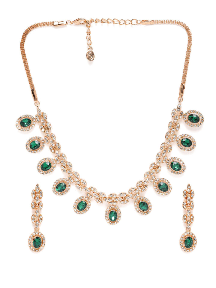 Rosegold Finish Lightweight Green American Diamond Necklace & Pair of Earrings